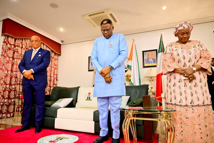 During the solemn encounter, Governor Otu expressed: “Your Excellency, my esteemed colleague, I empathize with the profound sorrow you are experiencing; we stand in solidarity with you during this time of grief. The loss you are enduring is colossal, and no one can truly replace the unique presence of your beloved wife. Each individual is distinct, just as every finger bears its own uniqueness. I have faith that the Divine will be a constant companion to you.