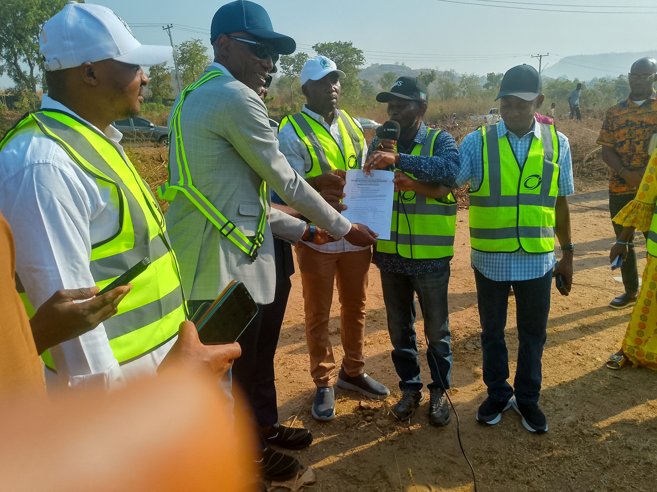 The high point of the ceremony is the presentation of the contract papers to the company by the representatives of the governor, while the contractor rolled out their equipment to commence work immediately.