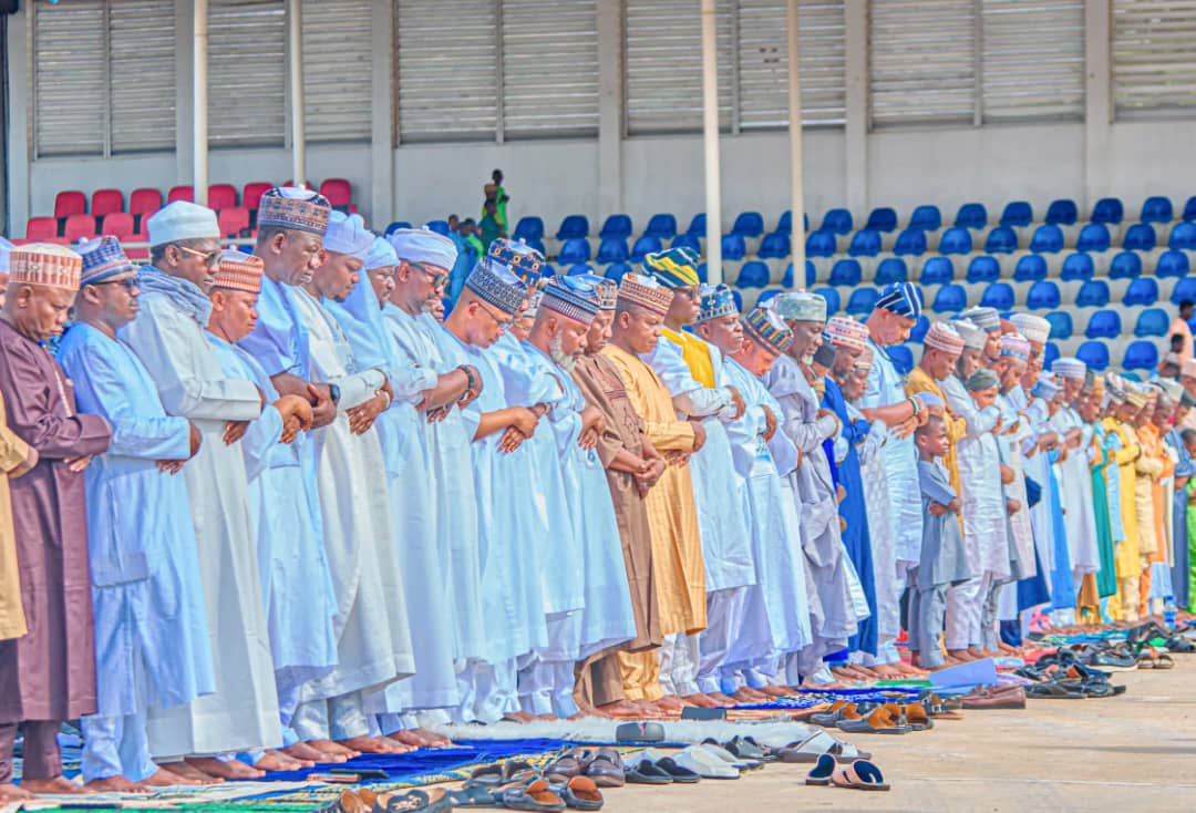 Today, Governor Ahmed Usman Ododo joined thousands of Muslim faithful at the Civic Centre Eid prayer Ground in Lokoja to celebrate Eid-al-Fitr, marking the end of Ramadan, the Islamic holy month of fasting.