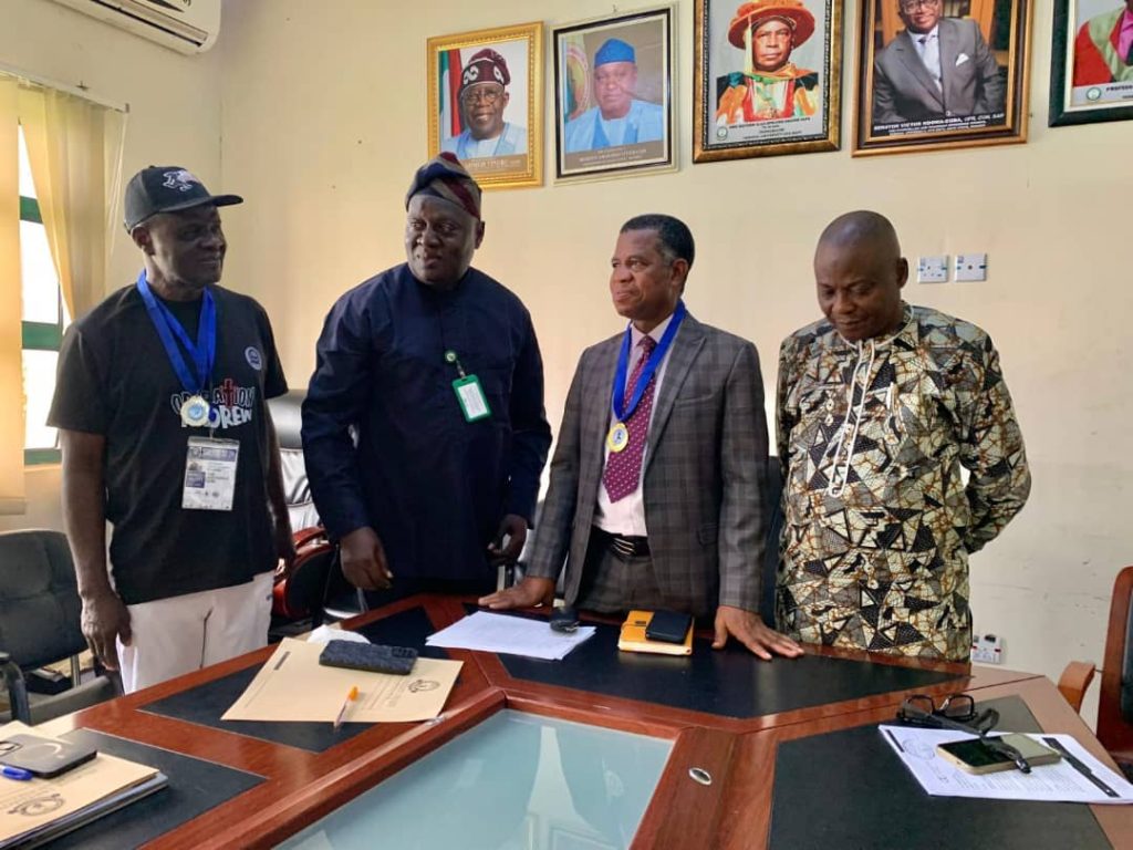 Mr Obajaja, Head of Sports; Prof. Adéyemí, Chairman, FUOYE Sports Committee; Prof Shittu, Acting VC; Prof Opoola, DVC Administration