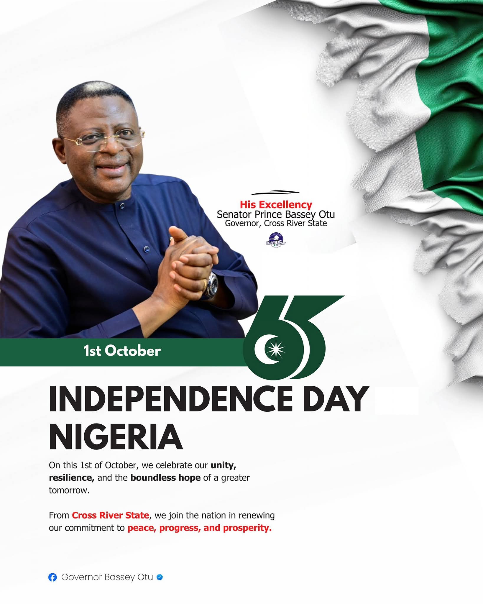 Governor Otu noted that at 65, Nigeria stands as a testament to the resilience of her people, their capacity to weather storms and rise from trials stronger and more determined. Governor Otu urged Cross Riverians, and indeed all Nigerians, to use the anniversary as an opportunity to look back at the path already trodden, draw strength from past victories, and chart a future anchored on unity, peace, and progress.