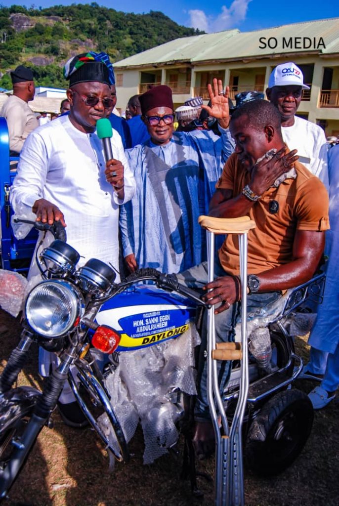 He also announced a monthly stipend of ₦10,000 for 200 elderly citizens and distributed farm inputs, tricycles, motorcycles, and deep freezers among other items to promote agriculture, transportation, and small businesses.