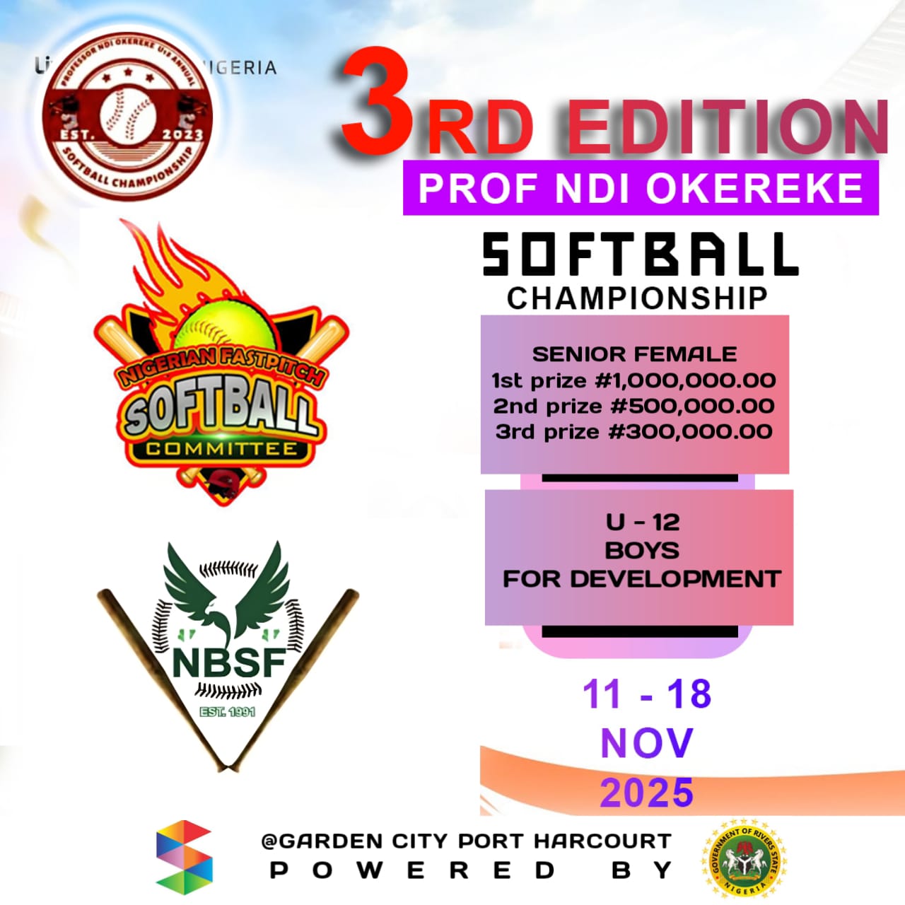 The much-anticipated Prof. Ndi Okereke Senior Softball Championship is back for its third edition, and fans are buzzing with excitement as the tournament prepares to kick off in Port Harcourt from the 11th to the 18th of November 2025 at the Garden City.